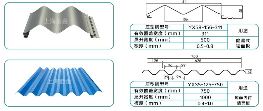 上海佰金彩鋼產品一覽表