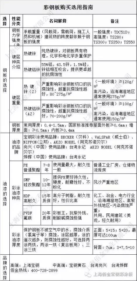 風(fēng)雪載荷主要是考慮建筑物的安全系數(shù)。這盡管和彩鋼板的力學(xué)性能有關(guān),但更多的和壓型鋼板的板型、厚度以及板與板之間的連接有關(guān)(關(guān)于鋼板材料的推薦在發(fā)展趨勢中描述)。而定量描述一個(gè)地區(qū)的腐蝕環(huán)境相對困難。影響彩鋼板的腐蝕因素有很多。下面我們具體來了解下彩鋼板購買時(shí)的選用指南。
