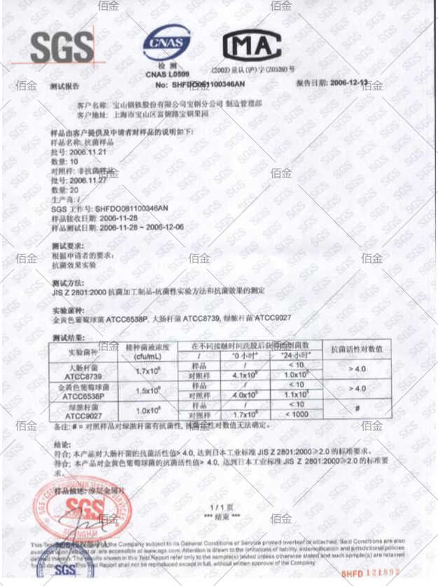 抗菌型彩涂鋼板最關鍵的技術,就是它的面漆中有銀離子。